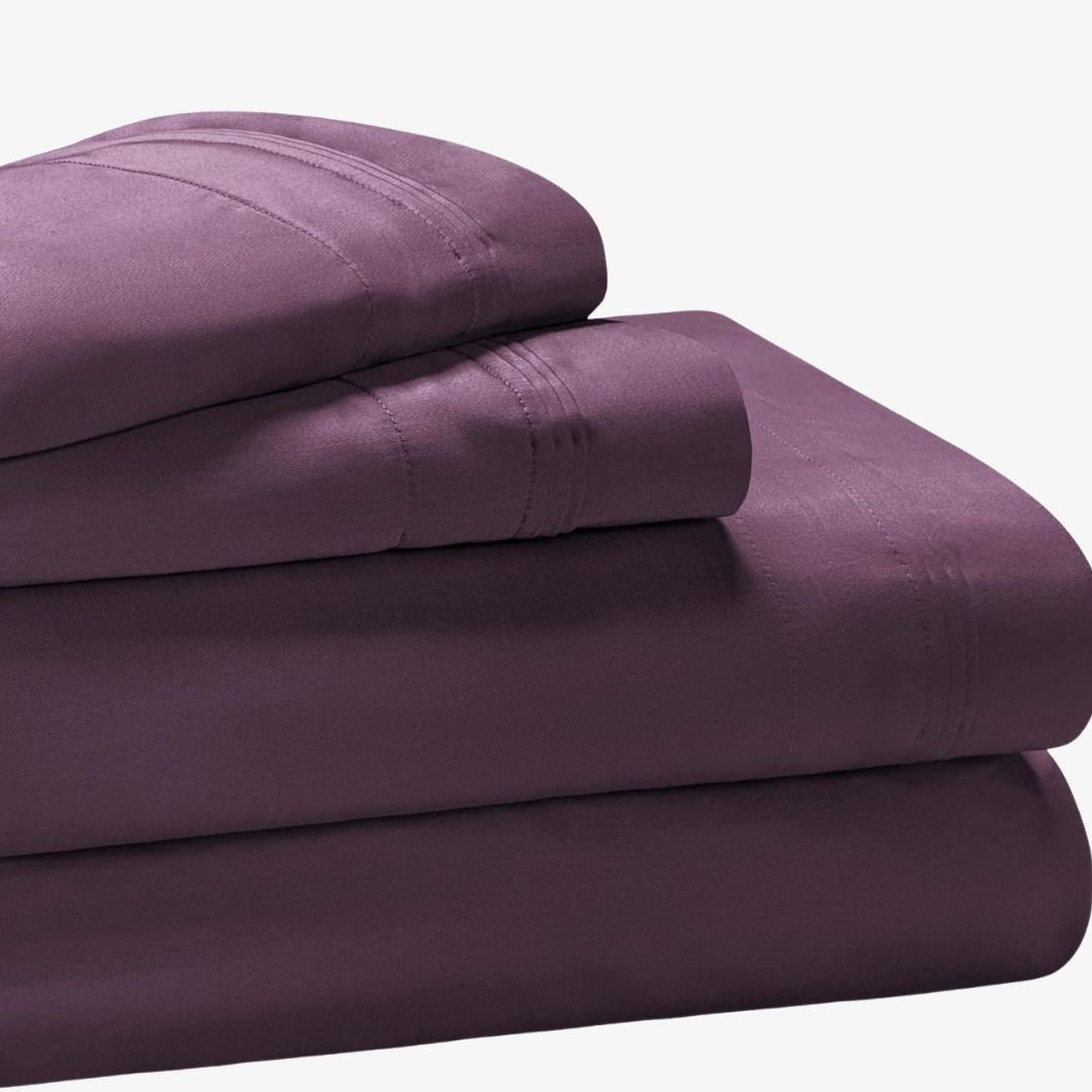 Superior Egyptian Cotton 4 Piece Sheet Set, 650 Thread Count, Modern Design, Sustainable Sheets, Ultra-Soft Basics, Solid, Deep Pocket Fitted Sheet, Flat Sheet, Pillowcases, California King, Plum